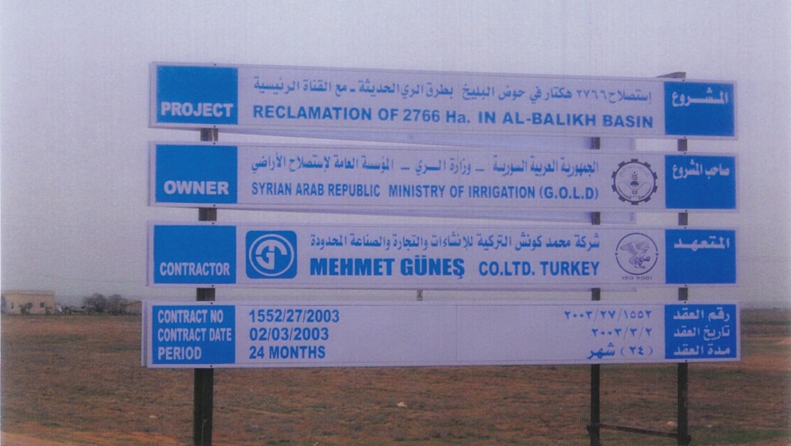 It is the irrigation and drying of 3000 hectares of land on the banks of the Belih River, 75 km north of Raqqa city. The main channel is 9.913 km long and has a capacity of 17m3/s. This canal irrigates 4200 hectares of Belih region. It has 7 sockets and has a single system. There are two bridged passages, a tubular overpass and two waste water channels for drying. The main channel is 9,913 km long and has a discharge capacity of 17 m/s. This canal irrigates 4200 hectares of Al Baleekh Plain. It has a structure with 7 outputs and a single system. It has two junctions, a piped passage and two waste water channels.